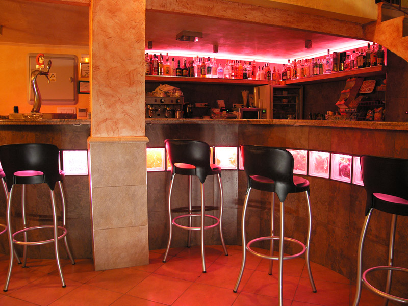 Zona barra. Leds en tono amarillo y halógenos barra.